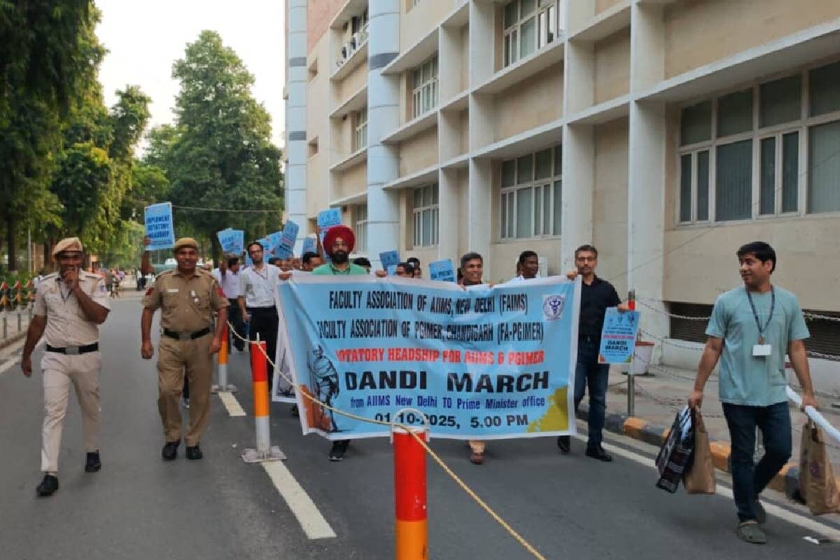 गांधी जयंती से पहले एम्स के डॉक्टरों ने निकाला दांडी मार्च, PMO की तरफ बढ़े