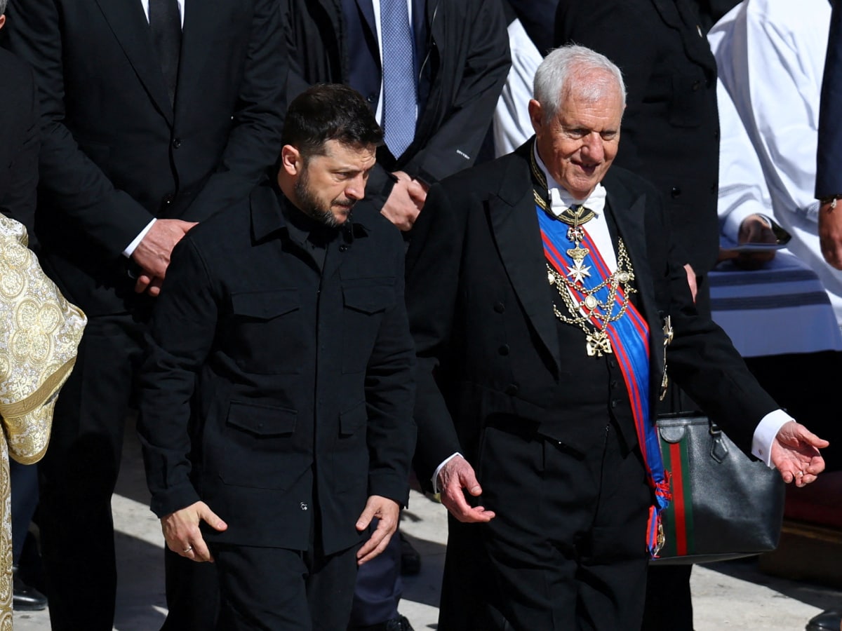 सेंट पीटर्स बेसिलिका की सीढ़ियों से उतरते ही यूक्रेन के राष्ट्रपति वोलोडिमिर जेलेंस्की का स्वागत जोरदार तालियों के साथ हुआ. पोप फ्रांसिस के अंतिम संस्कार में शामिल होने आए जेलेंस्की की मौजूदगी ने सेंट पीटर्स स्क्वायर के शोकाकुल माहौल को और गहरा कर दिया.